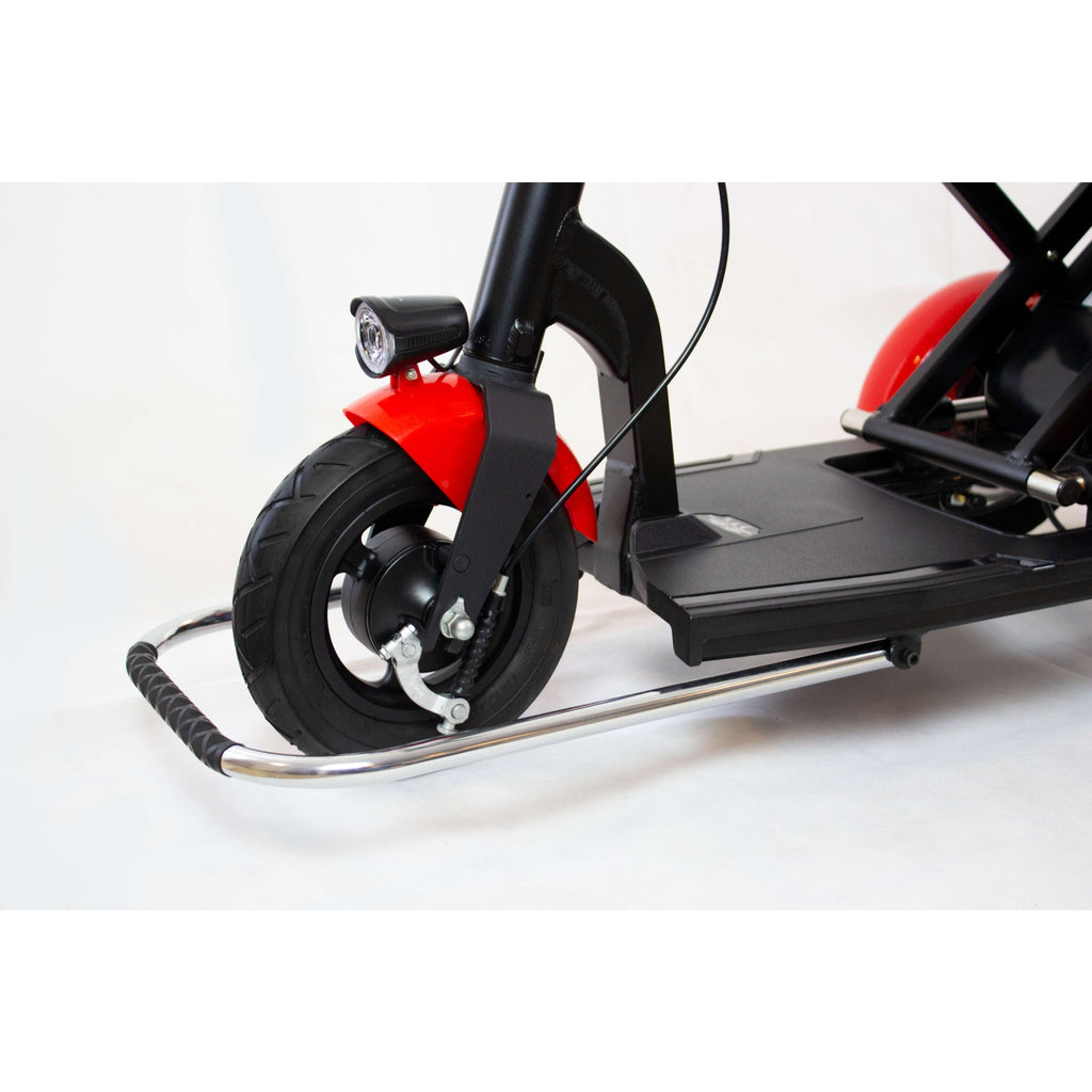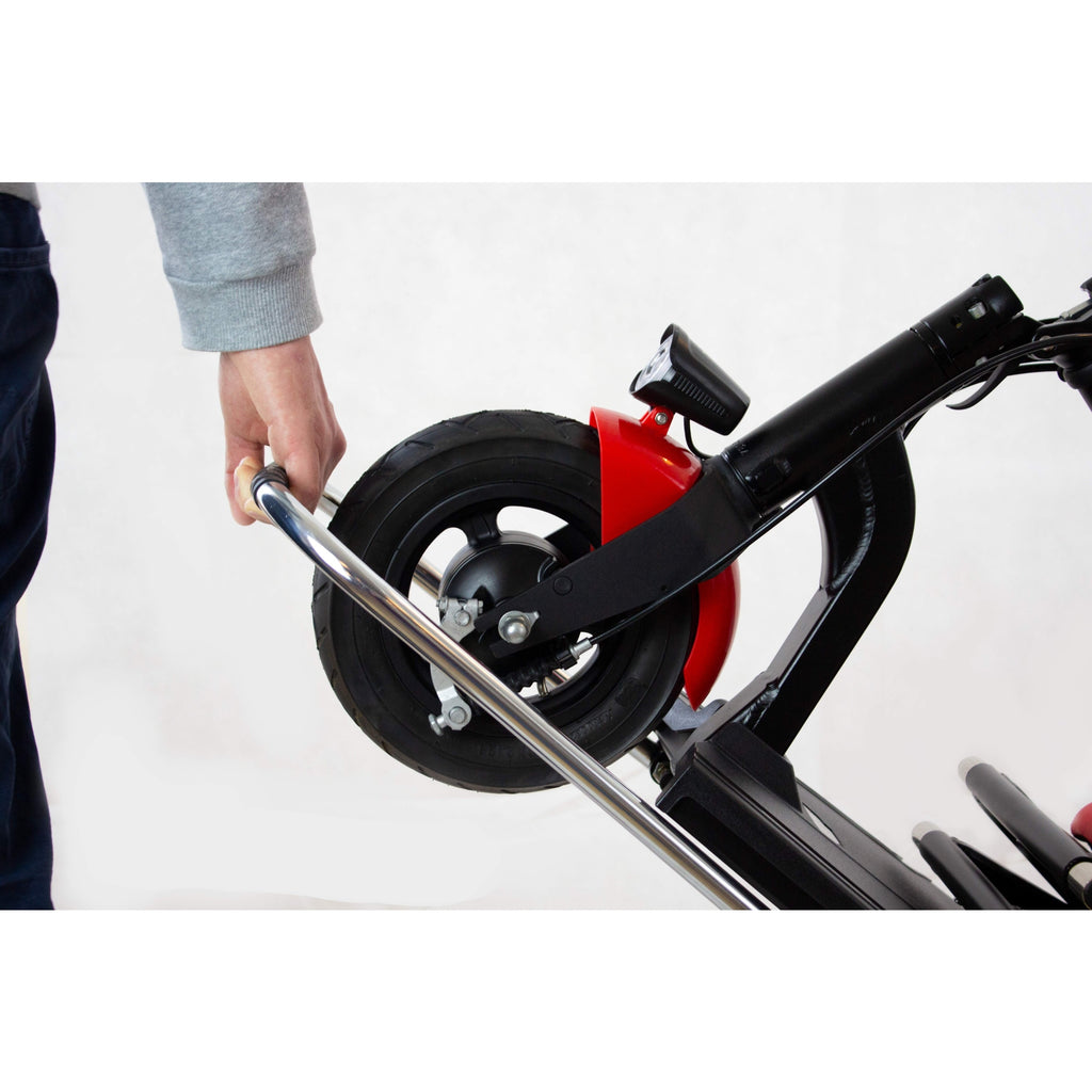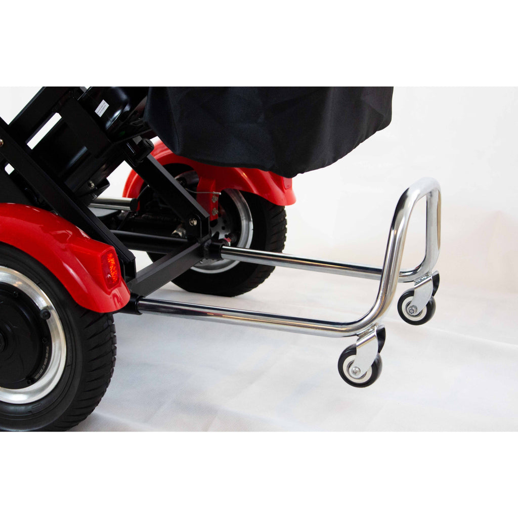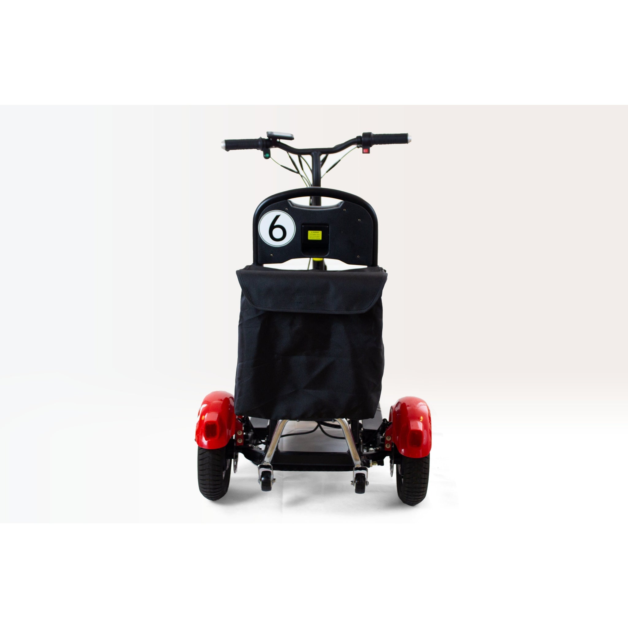 Unser klappbarer "MoBot" ist das ideale Gefährt zum Mitnehmen. Für die City, zum Einkauf, oder den kleinen Ausflug. Mit ein paar Handgriffen lässt er sich klein und kompakt zusammengelegt im Auto verstauen. Der vordere, klappbare Bügel, kann als Trolley-Griff verwendet werden und schütz gleichzeitig den „Mobot“ vor Beschädigungen. Der hintere, ausziehbare Bügel dient Ihrer Sicherheit und ist gleichzeitig Ablage für den Einkaufskorb. Das Fahrzeug eignet sich hervorragend zum Einkaufen denn eine praktische, fest montierbare Tasche ist bereits ebenfalls im Lieferumfang enthalten.