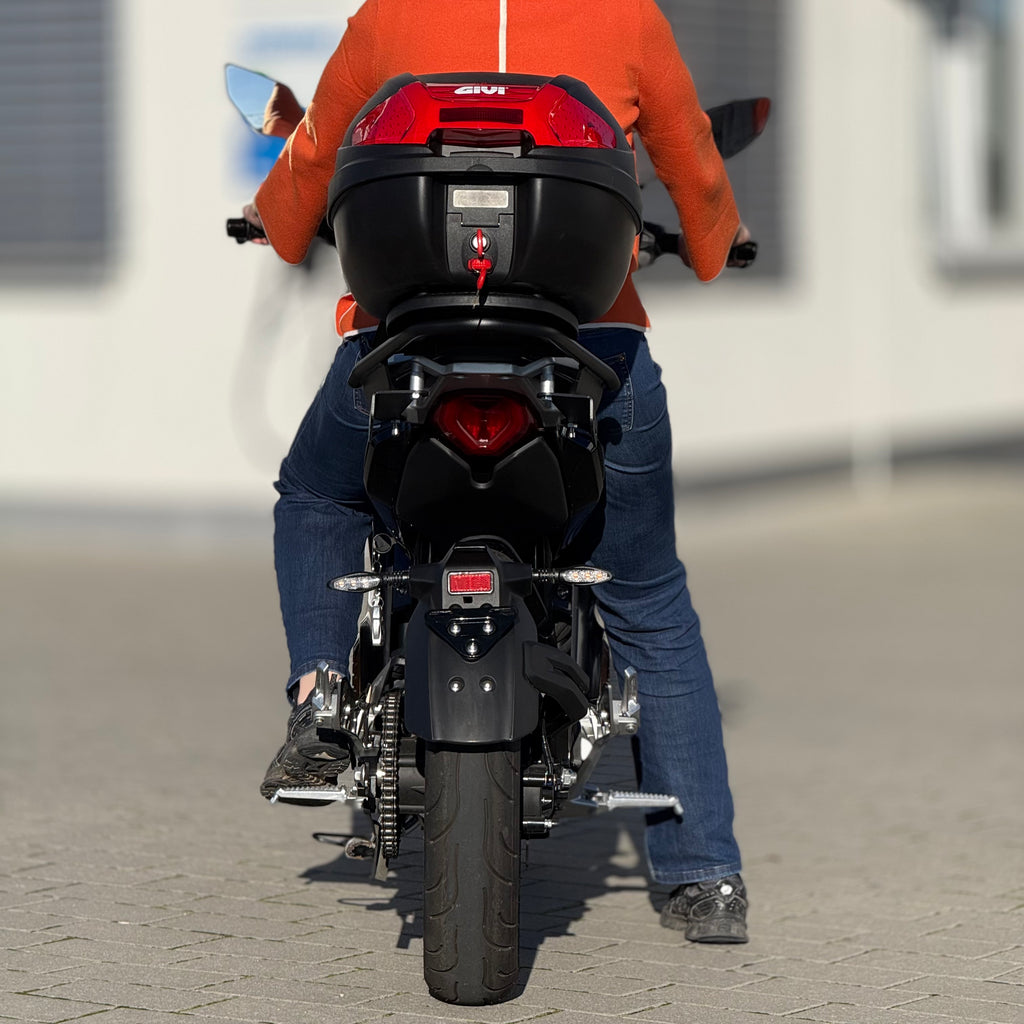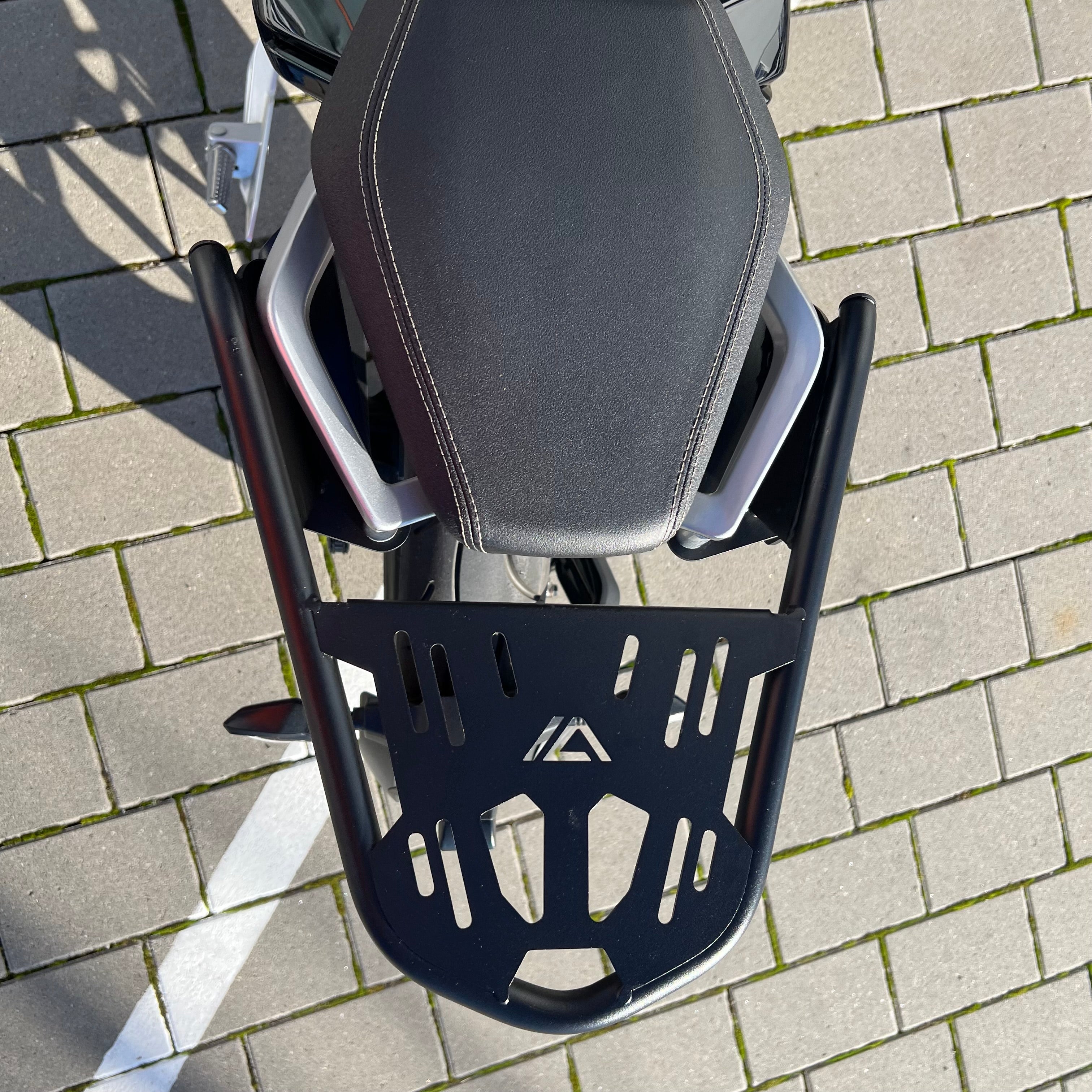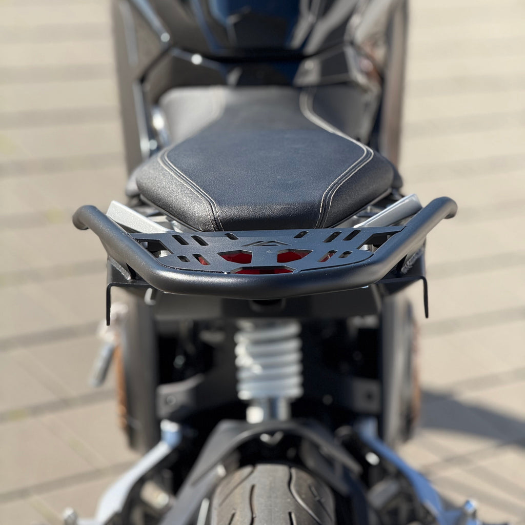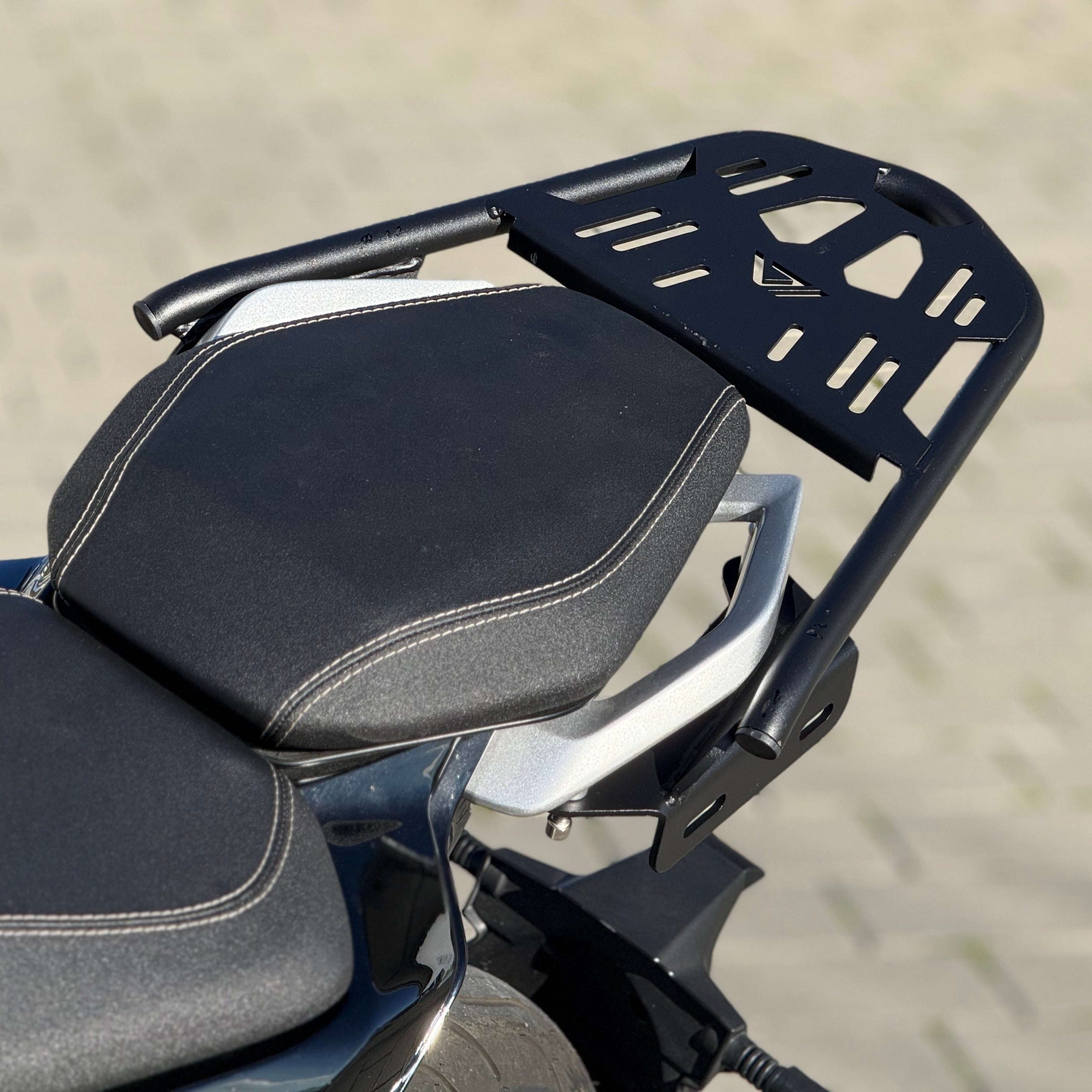 Dank seines schlanken, integrierten Designs fügt sich der Gepäckträger harmonisch in die Linienführung Ihres E-Motorrads ein und verbessert gleichzeitig die Transportmöglichkeiten erheblich. Eine effiziente Lösung, um den Stauraum Ihres Fahrzeugs ohne großen Aufwand zu erweitern.